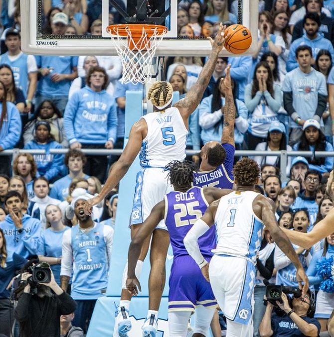 Off the cuff: Well, you can't say the Tar Heels never play well early anymore. In the first 10 minutes, Carolina got out to a 27-12 lead over James Madision. The Dukes' first five goals were all threes as the Tar Heels controlled the paint. The threes even stopped falling as the Carolina defense ruled the day. Coach Davis, despite Armando Bacot obivious heriocs of a career-high 22 points, specifically pointed to the defense of Caleb Love and Leaky Black. Neither Love nor Black were huge contributors offensively. Love was just one of six from three-point land and ended with nine points while Black was one of four from three and ended with just five points. Coach Davis said the pair's pressure on the ball was particularly good. "We have a chance to be a great team on the defensive end," he said. The defense, rebounding specifically, had been a little sketchy in the first three games. Carolina needed an outing like this one before entering the Phil Knight Invitational. Carolina plays host Portland on Thursday at 1 p.m. and will play Iowa State or Villanova Friday afternoon. The championship game is Sunday. On Nov. 30, Carolina travels to Indiana. So things get tougher. Coach Davis said they are all tough. "It's hard to win at this level," Coach Davis said. "We get everybody's best effort."