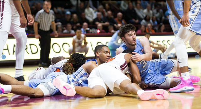 The Tar Heels led by as many as seven in the first half at 21-14 but the Hokies used a 9-0 run at the end of the half to take a commanding 39-32 advantage at the half.