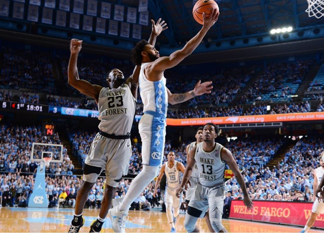 After a Kenny Williams steal and dunk midway through the second half, the Tar Heels looked to be on their way to a comfortable win, up 62-53. But Wake Forest hit three triples to tie the score and put together a 16-3 run to go up 69-65 with 2:20 left.