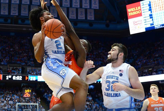 Off the cuff: Coby White can do some maddening things like when he lofted a weak passe that was picked off, or when he cranked up an ill-advised three as Carolina was trying to eat clock or when he fouled a three-point shooter late in the game with a three-possession lead. But, oh my, that freshman point guard can score. He scored 34 against Syracuse and now has three 30-point efforts to become the only freshman to accomplish that feat. J.R. Reid had two 30-plus point nights his freshman year. He creates a few gimmes with his speed for fast break layups or driveby layups. But mainly, he shoots. He had six three-pointers against the Orange and half of those were from way out. He also went 10 of 10 from the free throw line. Just like moving the ball up court, he doesn't waste time on the line. He takes the ball and shoots it, no dribbling and studying the rim. He said that he found in high school that the more he dribbled, the more he thought. "I found that I shot better when I don't think," White said. White said that when the Tar Heels are clicking, they can beat anybody. They didn't really click in the first half as they fell behind at the beginning and trailed by nine at 15-6. Carolina did manage to tie it once in the first half but the Tar Heels didn't lead until Luke Maye came up with a steal and got it to Kenny Williams for a fast break dunk that made it 51-49 Heels just over two minutes into the second half. "If we put two halves together we'll be really good," White said. |