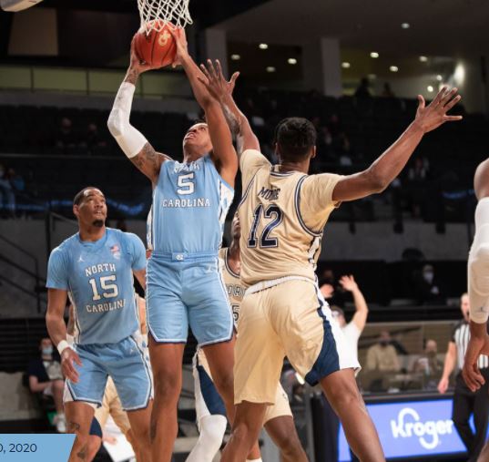 UNC's Armando Bacot goes up vs. GT. (UNC Sports photo by Maggie Hobson)