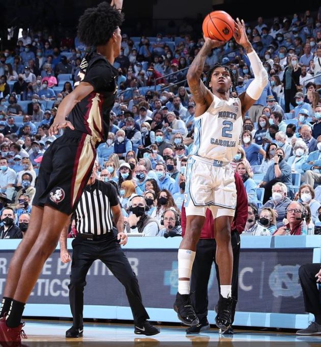 UNC's Caleb Love led the Heels with 18 points. (UNC Sports Information photo by Anthony Sorbellini.)