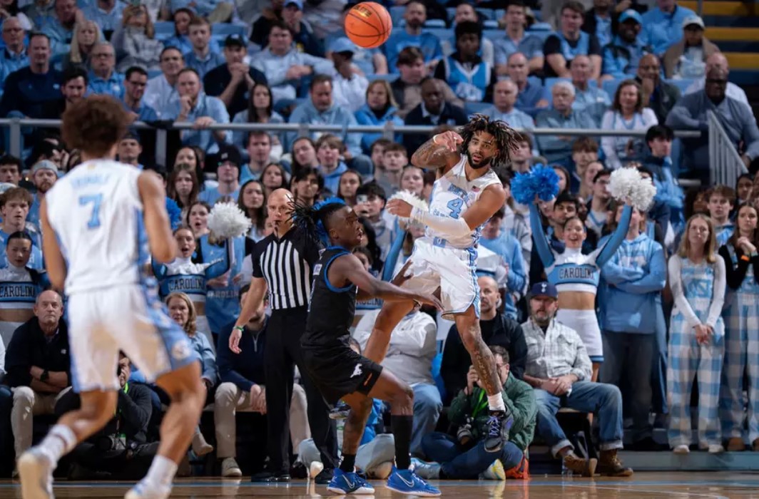 Ian Jackson has been the most notable freshman for Carolina but it was Drake Powell who set the tone in the first half as Carolina took control of the game. He scored 15 of his 17 points including 12 on three-point shots and the other three on a traditional three-point play.
