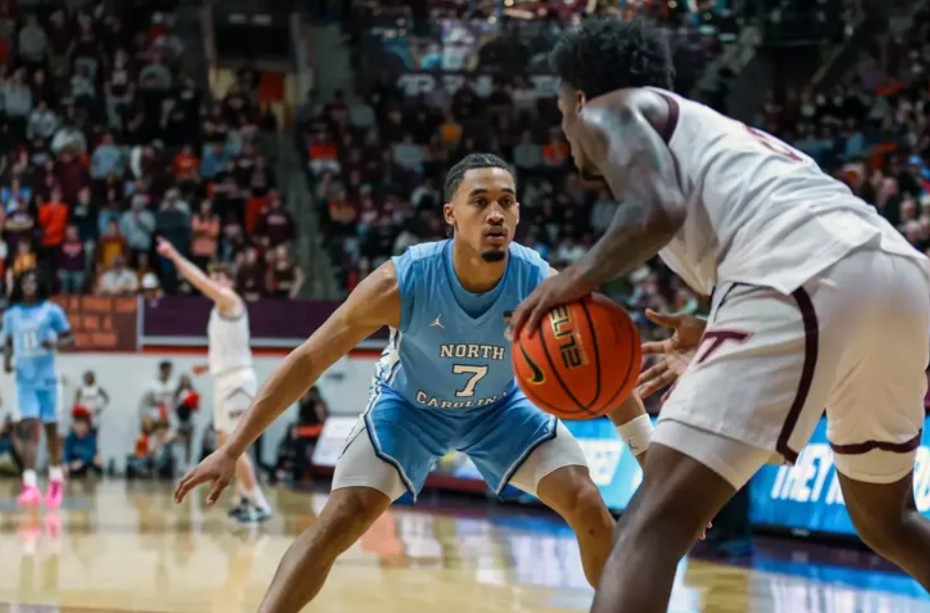 (Photo by UNC Sports Information.) North Carolina, using a season-high 15 three pointers, broke open a close game late in the first half and continued the onslaught in the second half, beating Virginia Tech 91-59 on the road. (3/4)